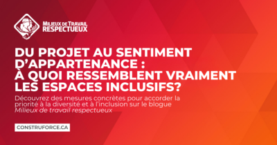 Les employeurs du secteur de la construction qui ont du succès savent que pour relever les futurs défis en matière de main-d’œuvre, ils doivent recruter auprès de groupes traditionnellement sous-représentés (femmes, Autochtones, nouveaux arrivants), ce qui nécessite de créer un milieu de travail respectueux et inclusif, qui soit accueillant pour tous.
